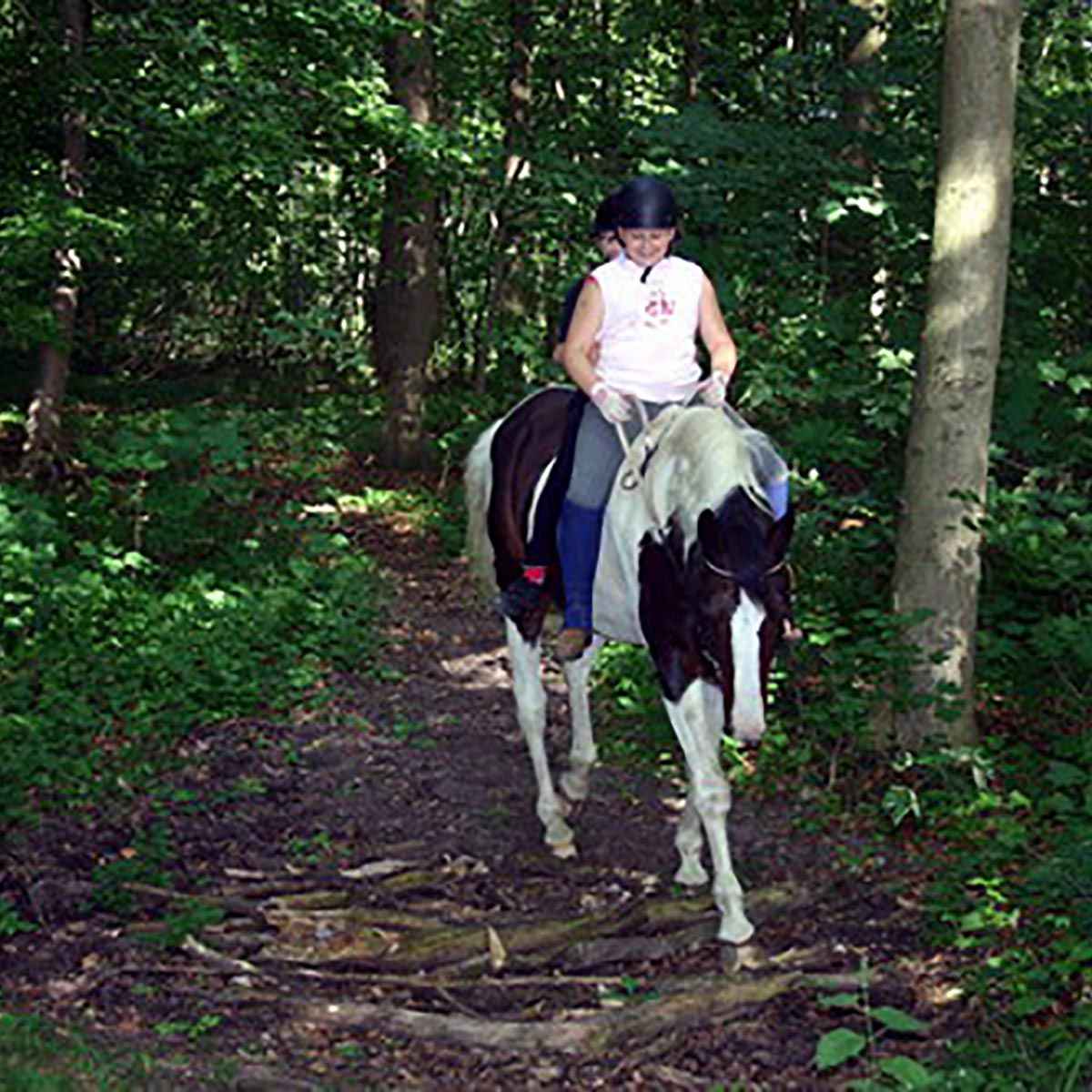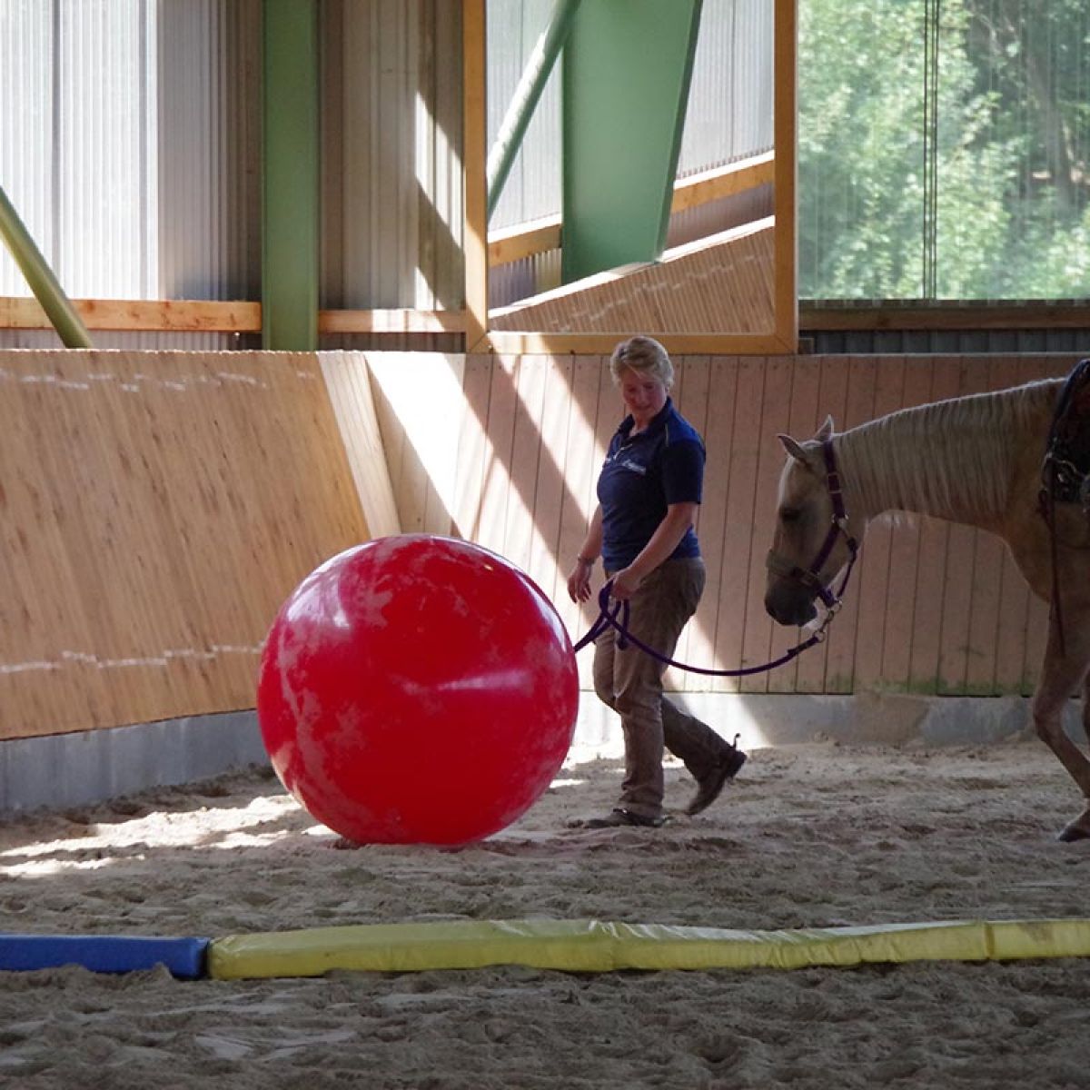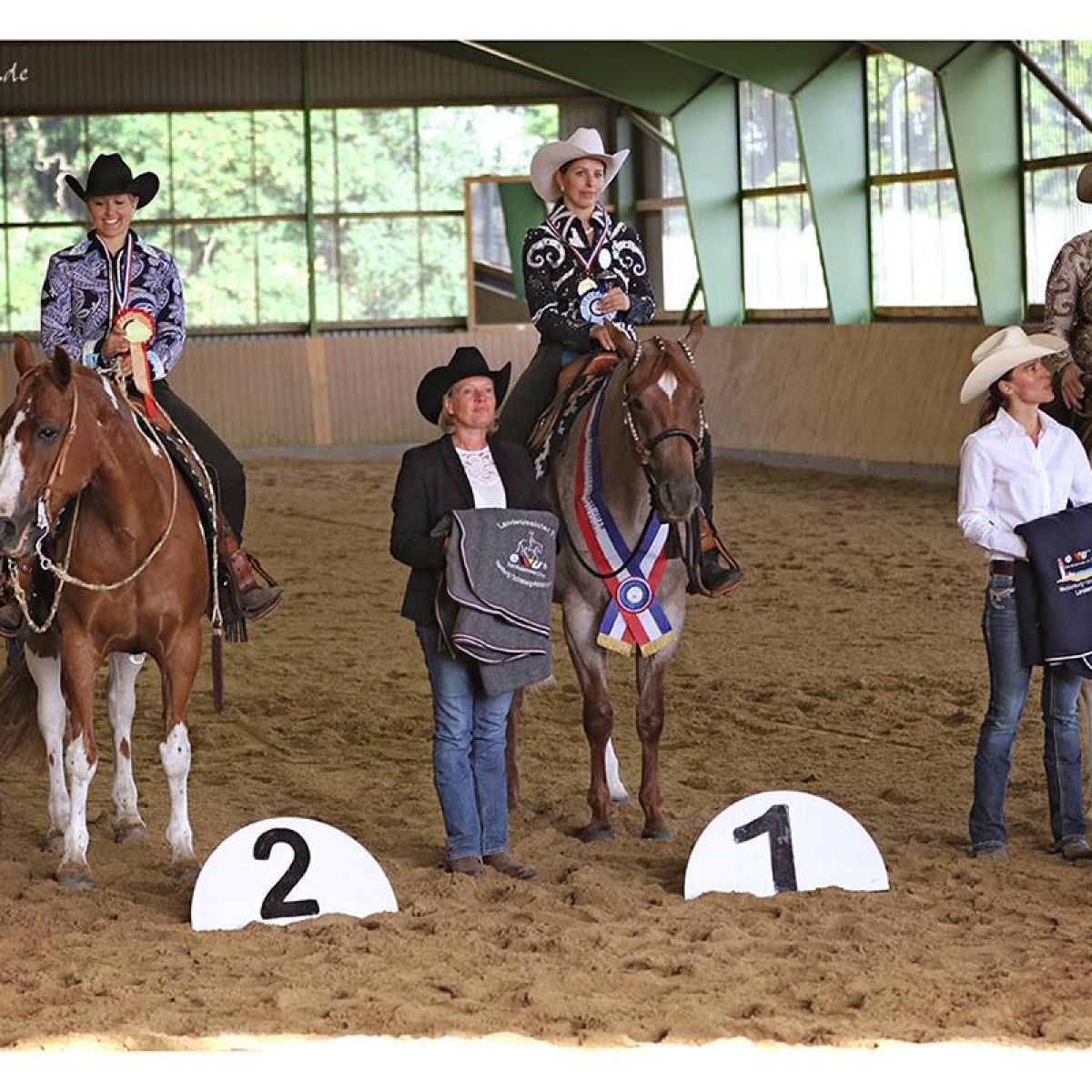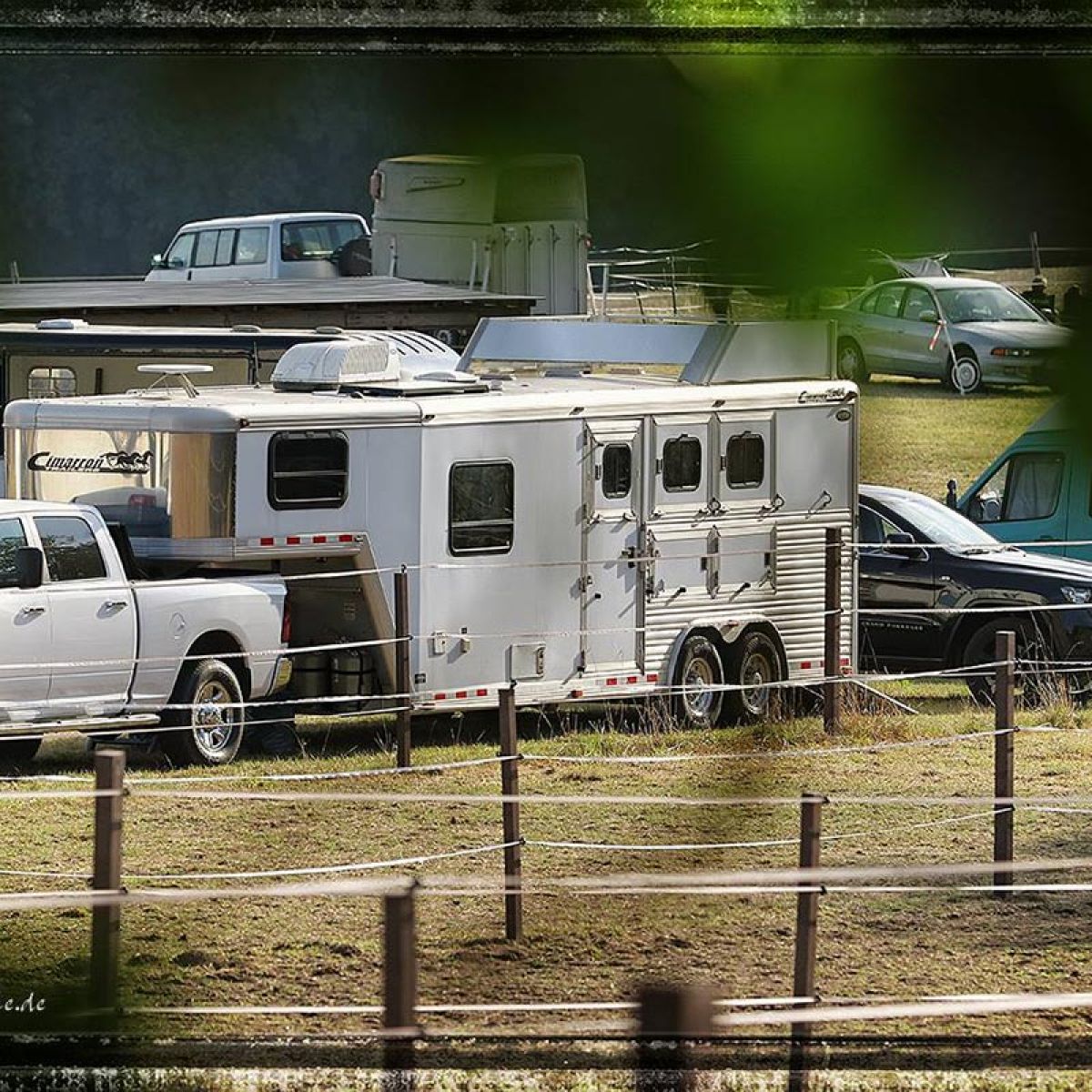 Unser 2018 erweiterte und neu gestalteter Außenreit und Trailplatz hat ein Reitmaß von 25 x 50m und hat sich als solcher bei der Landesmeisterschaft der EWU HH/SH und Mecklenburg Vorpommer im August schon super bewährt. Aufgrund seines Aufbaus (Fließ und Sand/Späne) ist er aber weder zum Longieren noch für Reining Manöver geeignet.